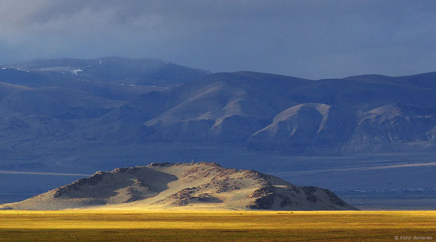 Скалистый холм, в Чуйской степи, расположен к юго-востоку от села Кош-Агач. На скалах выбито множество петроглифов с изображениями животных, сцен охоты и жизнедеятельности древних людей